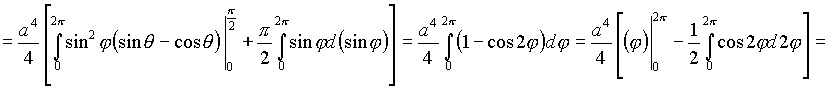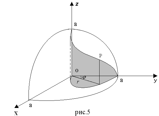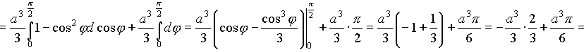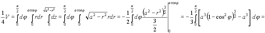 Пример1. Вычислить объём тела, ограниченного поверхностями: x2 + y2 + z2 = a2, x2 + y2 - ax = 0. (рис. 5)