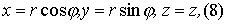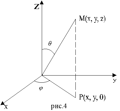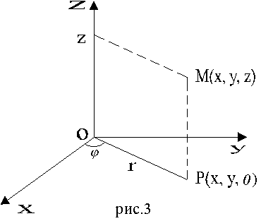 1. Цилиндрические координаты представляют соединение полярных координат в плоскости xy с обычной декартовой аппликатой z (рис. 3).