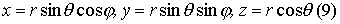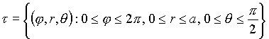 Решение. Перейдём в интеграле к сферическим координатам по формулам (9). Тогда область интегрирования можно задать неравенствами