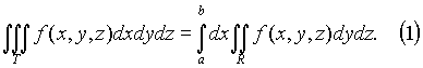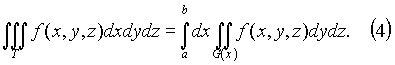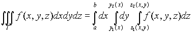 Вычисление тройного интеграла сводится к последовательному вычислению трёх определённых интегралов.
