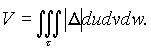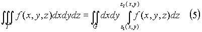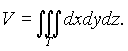 Объём V кубируемой области T (кубического тела) в пространстве xyz выражается формулой