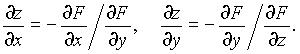 Аналогично, если функция z = f(x, y) заданна неявно уравнением F(x, y, z)=0, то