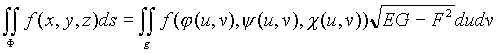 площадь поверхности, заданной параметрически: ![]()