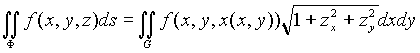интеграла по поверхности Ф, заданной уравнением