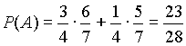 Пример . В первом ящике лежат 1 белый шар и 4 черных, а во втором ящике 1 белый и 7 черных. В первый ящик добавляются два шара, случайно выбранных из второго ящика. Найти вероятность того, что шар, выбранный наугад из пополненного первого ящика, будет черным.