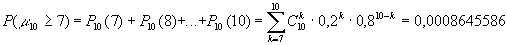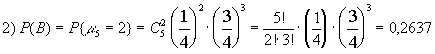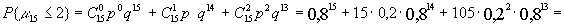 . Искомая вероятность - есть вероятность не более 2 успехов в 15 испытаниях схемы Бернулли с р=0,2.![]()