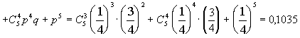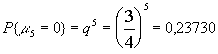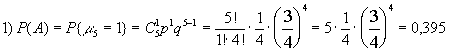 Моделью настоящего опыта является схема Бернулли с р=1/4, q=3/4.