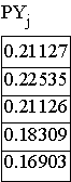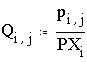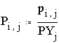 е) Опишем условный закон распределения Pi,j=P(X=xi/Y=yj)