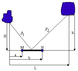 2. Рыбаку нужно переправиться с острова, А на остров В (смотри рисунок). Чтобы пополнить запасы, он должен попасть на участок берега MN. Найти наикратчайший путь рыбака S=S1+S2 3. Тело массой m0=3000 кг. падает с высоты H м. и теряет массу пропорционально времени падения. Коэффициент пропорциональности k=100 кг/сек. Считая, что начальная скорость V0=0, ускорение g=10 м/c2 , и пренебрегая сопротивлением воздуха найти наибольшую кинетическую энергию тела.
