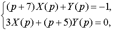 Аналогично а) получаем изображающую (операторную) систему алгебраических уравнений