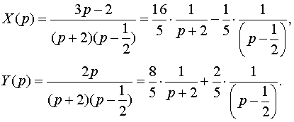 По таблице изображений находим оригиналы и получаем решение данной системы дифференциальных уравнений.