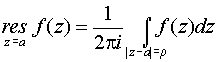 Пусть функция f (z) регулярна в некоторой проколотой окрестности конечной или бесконечно удаленной точки z=a. Тогда вычет в точке а равен деленному на 2pi интегралу от f (z) по границе любой достаточно малой окрестности точки а, ориентированной в положительном направлении.