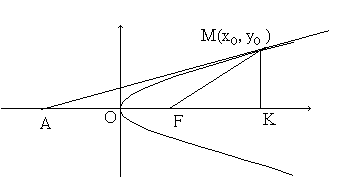AM – касательная к параболе в точке М; FM – луч, выходящий из F; МК – перпендикуляр из точки М на ось Ох. Введем обозначения: РOAM=a, РFMA=b, РMFK=g. |