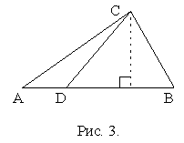 Свойство 2. Для любого треугольника ABC и любой точки D отрезка AB имеет место равенство SACD: SBCD=AD:BD (см. рис.3). В частности, любая медиана треугольника делит его площадь пополам.