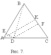 Доказательство. Достаточно показать, что для любой точки D отрезка AC сумма расстояний DE+DF от точки D до AB и BC равна расстоянию AK от вершины А до BC.