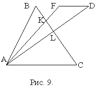 ABC. Точка L делит сторону BC пополам. Точка К делит пополам отрезок BL. Из вершины A через точки K и L проведены лучи и не них отложены вне треугольника отрезки LD и KF, причем LD=AL, KF=