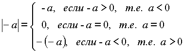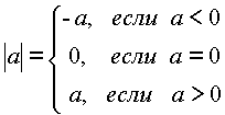 Определение. Абсолютной величиной (модулем) действительного числа а называется само число а, если оно неотрицательное, и число противоположное а, если а отрицательное.