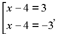 Пример 3. Решить уравнение |x-4|=3. По определению модуля имеем |