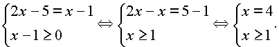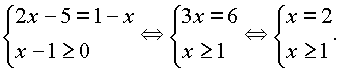 Пример 4. Решить уравнение: |2x-5|=x-1. Решим сначала систему: |