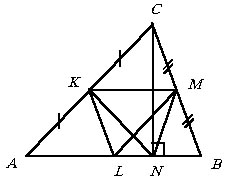 а значит треугольники MKL и ABC подобны с коэффициентом подобия