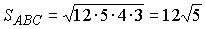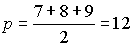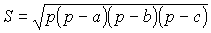 где p – полупериметр треугольника (формула Герона) и a, b, c – его стороны. |
