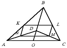 ABCD (см. рисунок), KL и NM – средние линии треугольников ABC и ADC, а