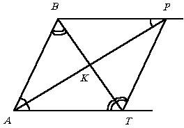Так как РBAP = РPAT и РPAT = РBAP (внутренние накрест лежащие углы), то DABP – равнобедренный и AP = BP. |