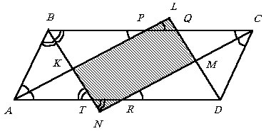 Для верхнего рисунка имеем KL = KP - PL = BP cos РBPA - QP cosРLPQ =