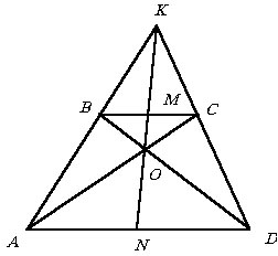 Заметим, что для решения задачи мы могли обойтись без этой конфигурации и выбрать путь полегче. Однако проведенные рассуждения полезны тем, что объясняют одно из ранее указанных простейших свойств трапеции.