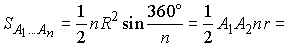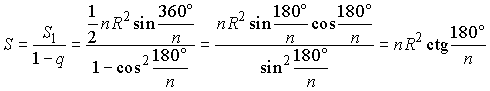В круг радиуса R вписан правильный n - угольник, в этот n - угольник вписан другой круг, в который опять вписан другой правильный n - угольник и так до бесконечности. Найти сумму площадей всех указанных n - угольников.
