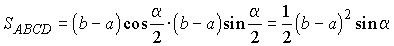 В параллелограмме со сторонами a и b и углом a проведены биссектрисы четырех углов. Найти площадь четырехугольника, ограниченного биссектрисами.