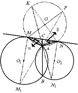 тогда Из прямоугольных треугольников AN = 2r cos (90° - b) = 2r sin b. Пусть r – радиус искомой окружности, KN и MP – диаметры. Так как углы AMN и AKM – вписанные в эту окружность, опирающиеся на одну и ту же дугу AN, то РAKN = a и из прямоугольного треугольника ANK имеем |