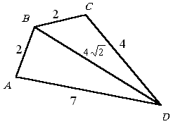 В четырехугольнике измерили стороны и одну диагональ, а затем их длины