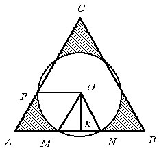 центр которого совпадает с центром треугольника.
