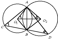 6. Через четыре точки A, B, C и D данной плоскости можно провести окружность тогда и только тогда, когда они не лежат на одной прямой и sin РABC = sin РADC; в частности, около четырехугольника можно описать окружность в том и только в том случае, когда сумма каких-то двух его противоположных углов (а значит, и двух других) равна 180°.