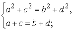 находим a = d и b = c, т.е. опять находим в четырехугольнике две пары равных смежных сторон. Диагональ четырехугольника, проходящая через вершины, из которых выходят равные стороны, разделит этот четырехугольник на два равных по третьему признаку треугольника.