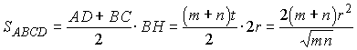 Заметим, что по умолчанию в ходе решения мы положили m > n, т.к. по рисунку AD > BC. Но, как видно из полученного ответа, и при m < n получим такую же формулу для площади трапеции.