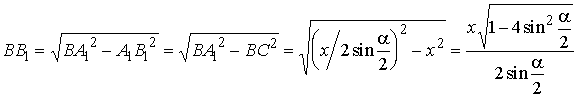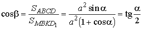 угол между плоскостью сечения и плоскостью основания, по формуле (7) получаем