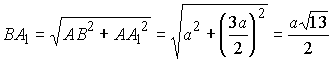 Указание. Сначала докажите, что точки А, В, С и D не могут лежать в одной плоскости. Это будет обоснованием того, что можно, как указано на рисунке, построить прямую призму, у которой a – искомый угол. |