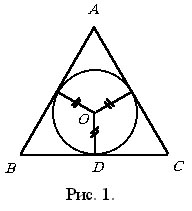 внутри треугольника АВС, т.е. является центром вписанной окружности (рис.