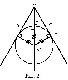 – точка касания окружности с ВС), в случае а) имеем получаем