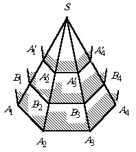 Указание. Желательно определить числа вершин, ребер и граней в n-угольной пирамиде (усеченной пирамиде).