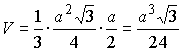 В основании пирамиды лежит равносторонний треугольник со стороной a. Найти объем пирамиды, если известно, что плоскости боковых граней наклонены к плоскости основания под углом 60° .