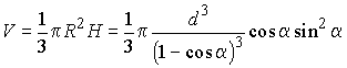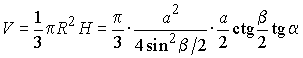 объем конуса (V), угол наклона образующей к плоскости основания (a),