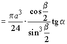 Через вершину конуса проведена плоскость под углом a к основанию. Эта плоскость пересекает основание по хорде АВ длины a, стягивающей дугу основания конуса, которой соответствует центральный угол величины b . Найти объем конуса.