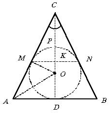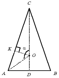 Пусть О – центр вписанной окружности в осевом сечении конуса. По