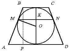 В осевом сечении получим равнобедренную трапецию с вписанной в нее окружностью