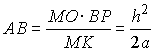 Сделаем чертеж осевого сечения. Тогда MK = a, BP = h.