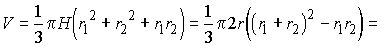 В усеченный конус вписан шар радиуса R. Образующая конуса наклонена к плоскости нижнего основания под углом ( a < 90°) . Найти объем усеченного конуса.