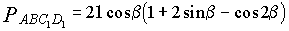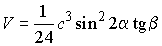 7.8.6. 1975 г. Основанием прямой призмы служит прямоугольный треугольник с гипотенузой c и острым углом a. Через гипотенузу нижнего основания и вершину прямого угла верхнего основания проведена плоскость, образующая с плоскостью основания угол b. Определить объем треугольной пирамиды, отсеченной от призмы плоскостью.